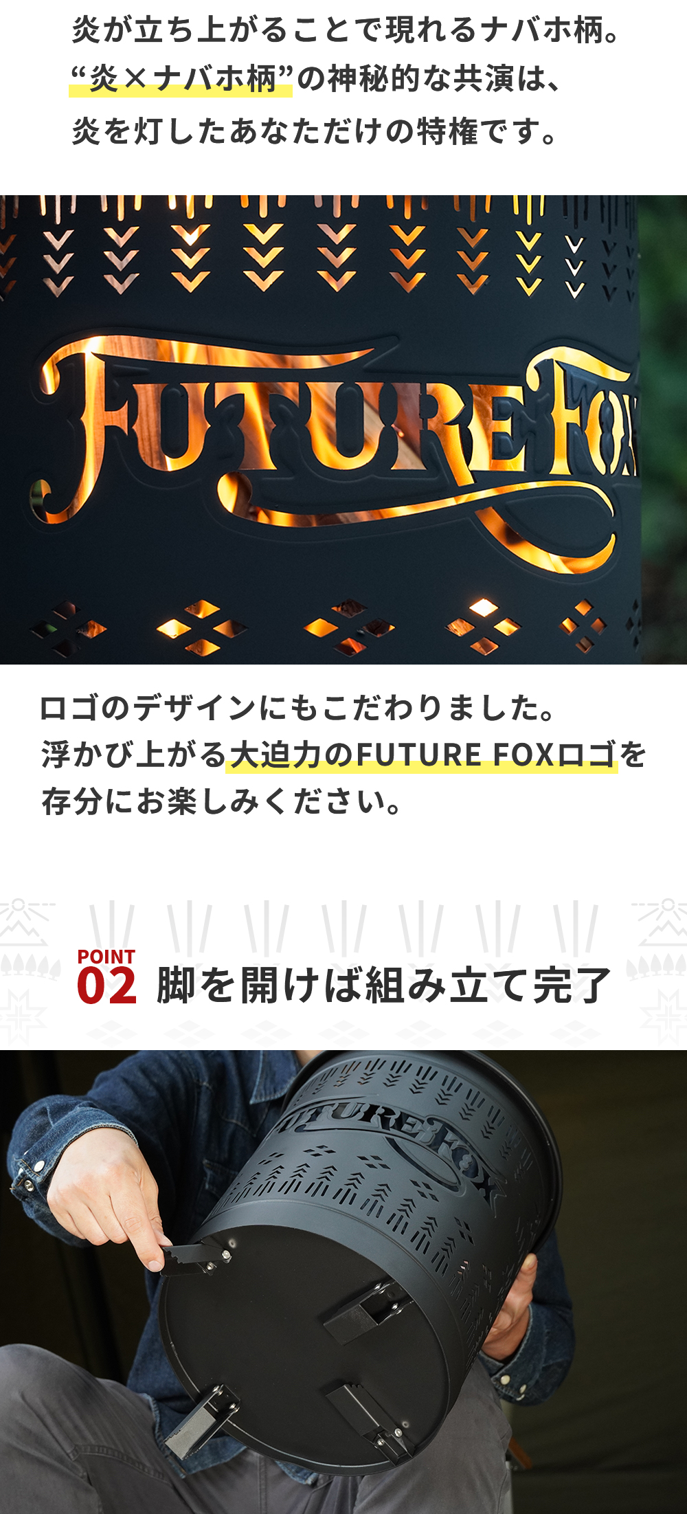 焚き火台 ナバホソロ2 FUTURE FOX ソロ 鉄製 ナバホ柄 たきび台 焚火台 キャンプ 収納袋 五徳付2
