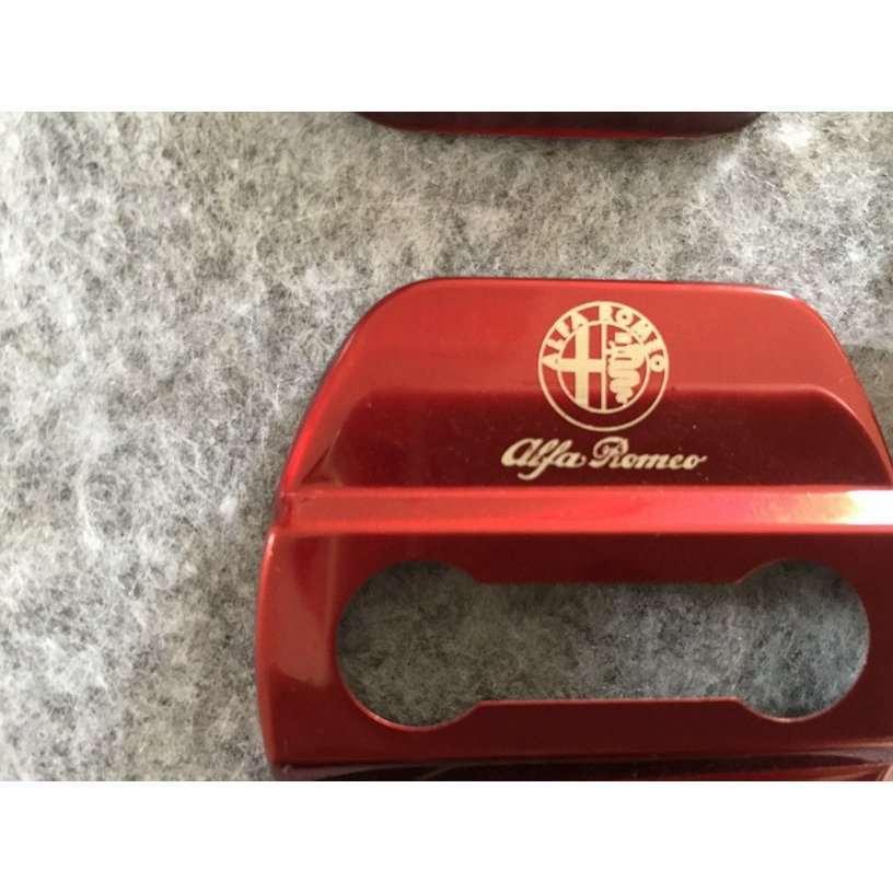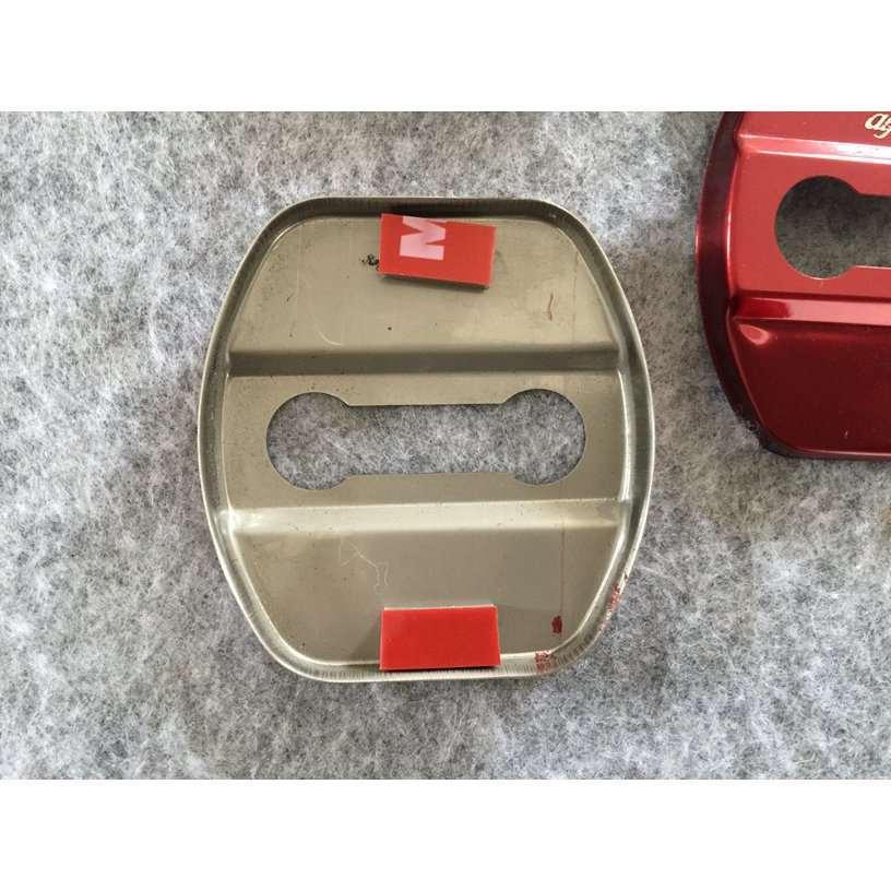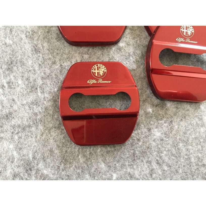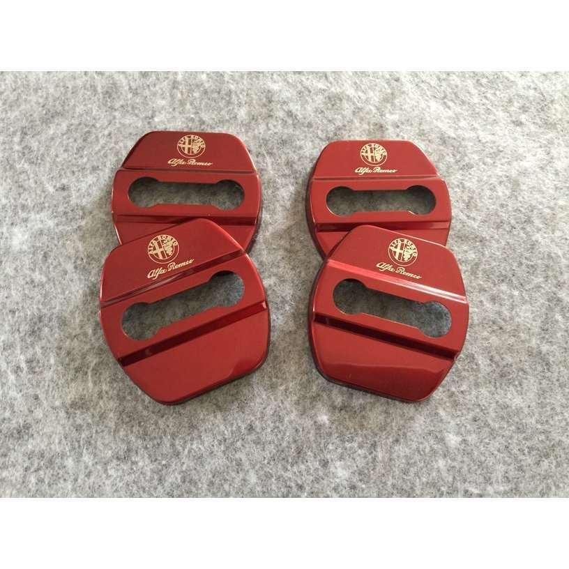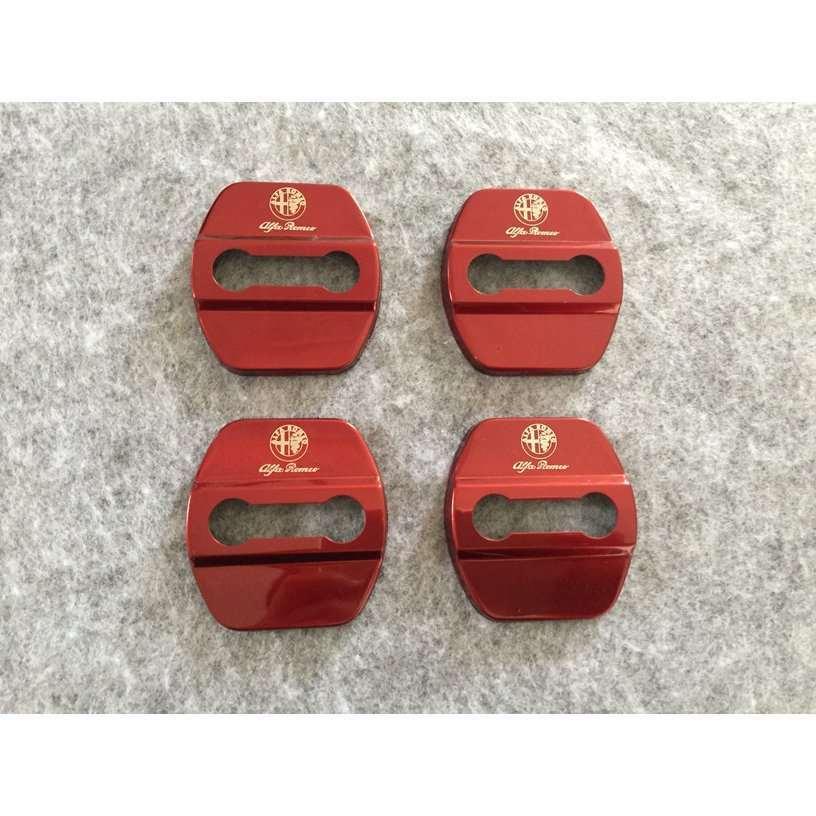 送料無料 アルファロメオ用★4枚セット ステンレス製 車のドアロックストライカーカバー レッド 装飾カバー部品 専用ロゴ入り 軽量
