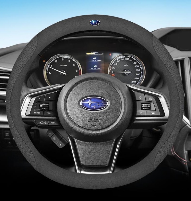 ◆スバル SUBARU◆ブラック花柄◆ハンドルカバー ステアリングカバー コンパス ハンドル保護 38CM 専車ロゴ アルカンターラ調 滑り止め O型 aacb qtm