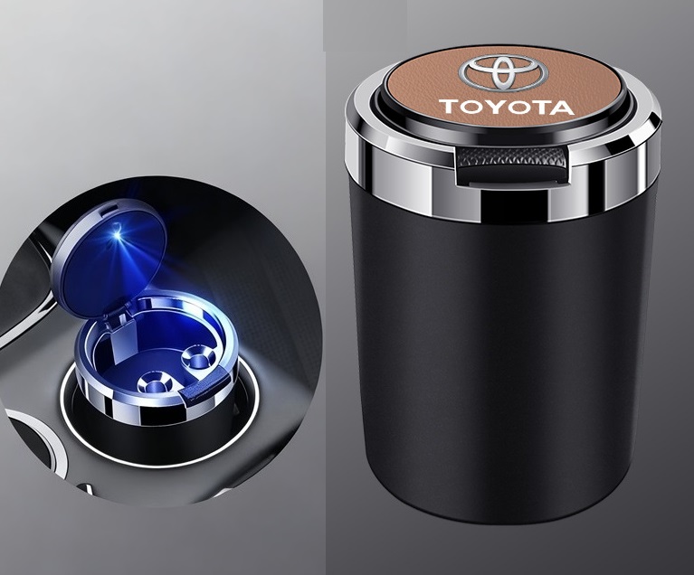 ★トヨタ TOYOTA★ブラウン★車内用灰皿 タバコ灰皿 ミニごみ箱 LEDライト付き 火消し穴 灰捨て簡単 臭い漏れ防止 専用-車のロゴ 蓋付き aagq qtm