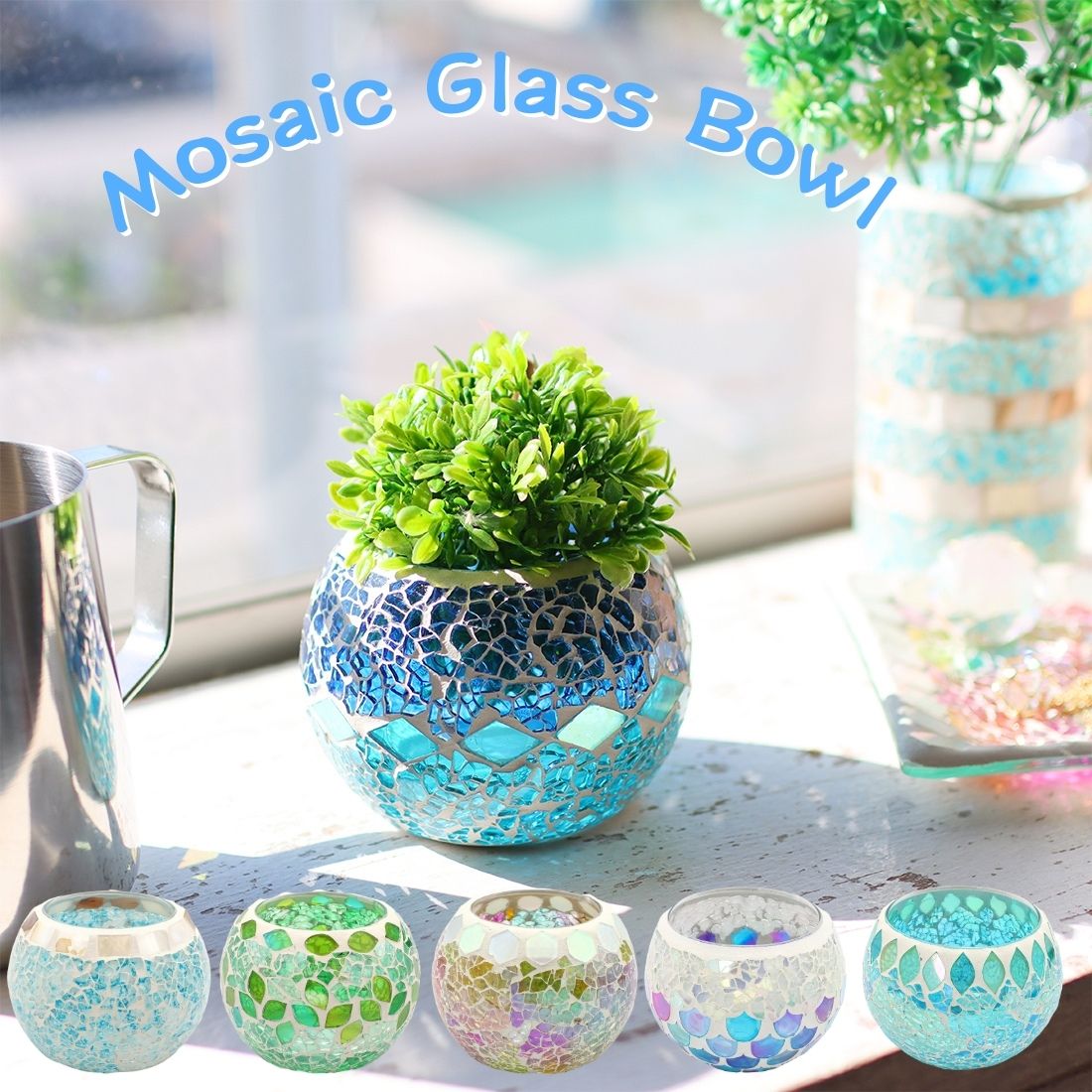 観葉植物 ミニ 鉢植え モザイク タイル ガラス ブルー グリーン ホワイト キャンドルホルダー 小さい 小物入れ ろうそく立て かわいい おしゃれ プランター プレゼント ギフト 盆栽 グリーン 鉢 ハワイアン雑貨