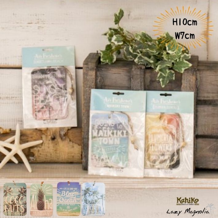 プルメリアやココナッツなど、HAWAIIの香りがするエアーフレッシュナー。お部屋や車で、いつでもハワイアン気分に♪
