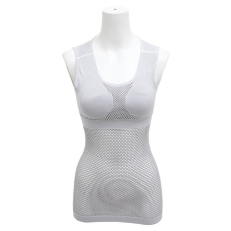 ●一年を通して発汗による冷えと不快感を軽減する、究極のドライ感を実現した次世代のアンダーウェア(肌着)。疎水性に優れ、熱伝導率の低いポリプロピレンをベースに、かさ高メッシュで編み上げることで肌面の汗を素早く吸収し、上位のベースレイヤーに拡散します。さらに汗を吸ったベースレイヤーはメッシュの厚みによって肌から遠ざけられ、肌面の冷えを防ぎ、ドライ感を保ちます。気温の高い季節や薄手のレイヤーに合わせやすいタンクトップタイプ。