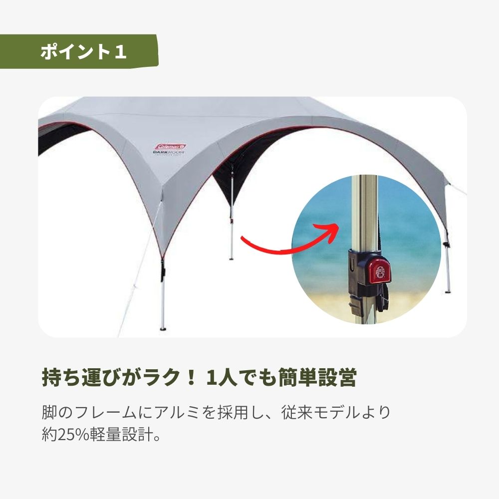 ●日光を90%ブロックし涼しい空間を実現軽量で1人でも設営できる風に強い自立式シェード