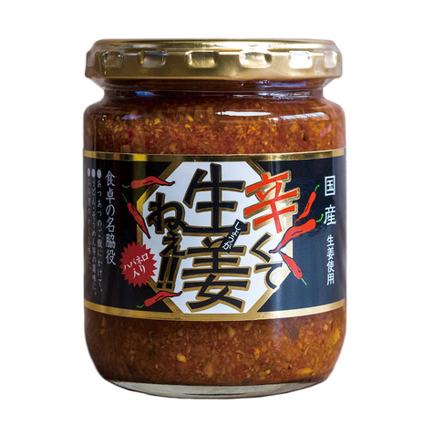 ●福島県産えごま入り。国産生姜を特製醤油に漬け込んだそのまま食べても、ご飯にかけても、お刺身の薬味としても「辛くてしょうがない」一品です。