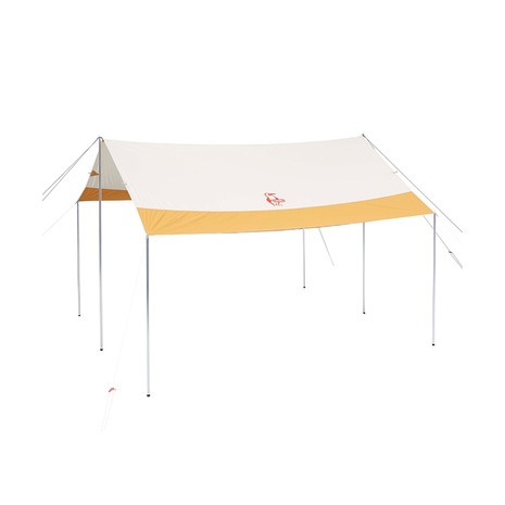 ●T/C素材(ポリエステル・コットン)を使用したスクエアタープ。ファミリーキャンプやグループキャンプなど、大人数でも広々とした空間が確保できるビッグサイズ。用途に合わせて設営のバリエーションを変えられる自由度の高さが魅力。