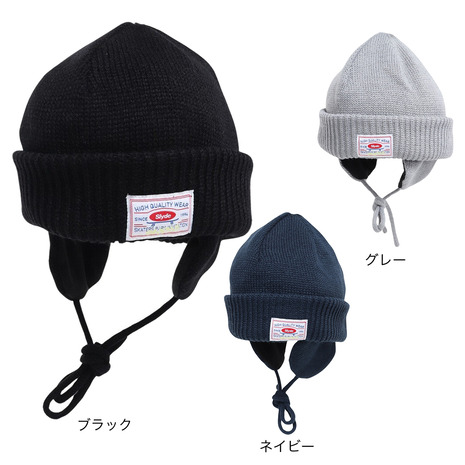 スライド(SLYDE)(メンズ、レディース)ニット帽 EAR MAFF ニットキャップ ビーニー SL23FW-HAT003 フリーサイズ 紐付き 耳当て付き