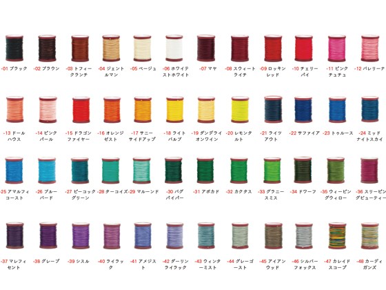 ■色:全48色、01ブラック/02ブラウン/03トフィークランチ/04ジェントルマン/05ベージュ/06ホワイテストホワイト/07マヤ/08スウィートライチ/09ロッキンレッド/10チェリーパイ/11ピンクチュチュ/12バレリーナ/13ドールハウス/14ピンクパール/15ドラゴンファイヤー/16オレンジゼスト/17サニーサイドアップ/18ライトバルブ/19ダンデライオンワイン/20レモンタルト/21ライツアウト/22サファイア/23トゥルース/24ミッドナイトスカイ/25アマルフィコースト/26ブルーバード/27ピーコックグリーン/28ターコイズ/29マルーンド/30バグパイパー/31アボカド/32カクタス/33グラニースミス/34ドワーフ/35ウィーピングウィロー/36スリーピングビューティー/37マレフィセント/38グレープ/39シスル/40ライラック/41アメジスト/42ダーリンライラック/43ウィンターミスト/44グレーゴー