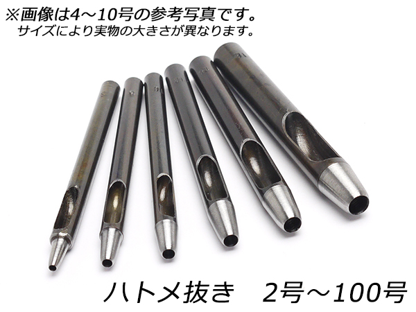 ハトメ抜き 全22サイズ(2号φ0.6mm〜100号φ30mm)【メール便対応】 [協進エル] レザークラフト工具 ハトメ抜き