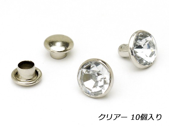 クリスタル(リベット) クリアー φ7mm 10ヶ カシメ式【メール便対応】 [協進エル] レザークラフト金具 クリスタルポイント(リベット)