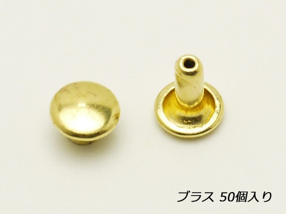 両面カシメ 小 ブラス(キリンス) φ6mm|足の長さ6mm 50ヶ【メール便対応】 [レザークラフトぱれっと] レザークラフト金具 両面カシメ小並