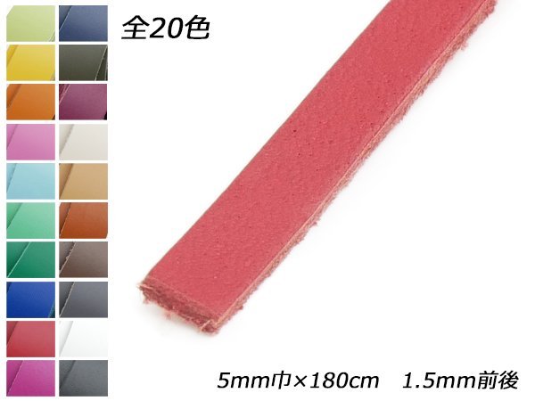 クロッタンレース(コンビ鞣し) 全20色 5mm巾×180cm 1.5mm前後 1本【メール便対応】 [レザークラフトぱれっと] レザークラフト革ひ