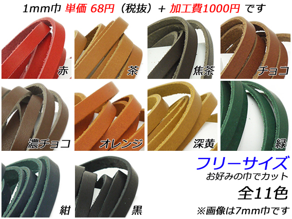 7mm、10mm、15mm、20mm、25mm、30mmは定番サイズで取り扱いがありますので、そちらからご購入ください。白は革自体が製造元で廃止となりました、なくなり次第終了となります。■漉きについて:この商品の漉き加工費は巾によって異なります。20mm巾以下なら1本330円(税込)、同様の厚みであれば2本目以降は110円(税込)です。21mm巾以上の場合は660円(税込)です。漉き加工をご希望の場合は厚みに応じて下記リンクの「漉き加工費(20mm巾以下の革ひも)」または「漉き加工費」もカートに入れてご注文ください。仕上がりの厚みはご注文時の備考欄へご記入ください。漉き加工をした場合は悪品を除き返品はできません、予めご了承ください。漉き加工について詳しくは下記リンクの「漉き加工費(20mm巾以下の革ひも)」または「漉き加工費」ページをご覧ください。■関連商品■