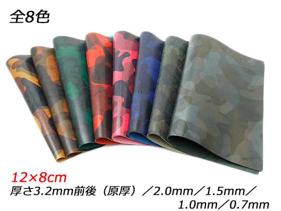 があります。使っているうちに取れていきますが、気になる場合は布等でやさしく拭き取るか、ドライヤーの温風で革になじませてください。迷彩柄は部位によってかすれが出る場合があります。■革の価格について:カット革ですので、価格は表示通りです。■漉きについて:漉き加工をご希望の場合は下記リンクの「漉き加工費(660円)」もカートに入れてご注文ください。仕上がりの厚みや範囲等はご注文時の備考欄へご記入ください。分割漉きの場合は2枚目以降も同額かかります。漉き加工をした場合は悪品を除き返品はできません、予めご了承ください。漉き加工について詳しくは下記リンクの「漉き加工費」ページをご覧ください。■【注意点】閲覧環境等によって画像の色合いが異なることもあります。◇在庫切れ等によって予定日内に発送できない場合はご連絡させていただきます。◇革は天然のものですので傷やムラ等が入ることもございます。◇ロットによって色・質感が異なることがあります。■関連商品■
