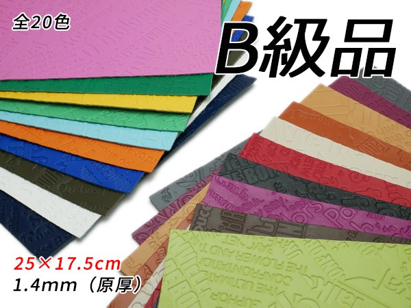 ■商品説明:アルファベット(クロッタン)のB級切り革です。B級の理由は、一部欠け、吟面の傷や汚れ、床面の深い傷等様々です。B級品のため、傷等のコンディションを理由にした返品や交換はお客様送料ご負担となりますので、予めご了承ください。乱雑に配置されたアルファベットの型押し牛革。コンビ鞣しで適度なハリもあるクロッタンに型押しをした革です。コバも軽くなら磨