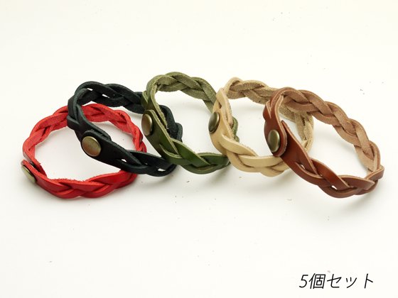 トリック編みブレスレットキット[ヌメ革]混色セット アソート 太さ1.4×長さ21cm(端から端までの長さ) 5本入り【メール便対応】 [レザークラフ