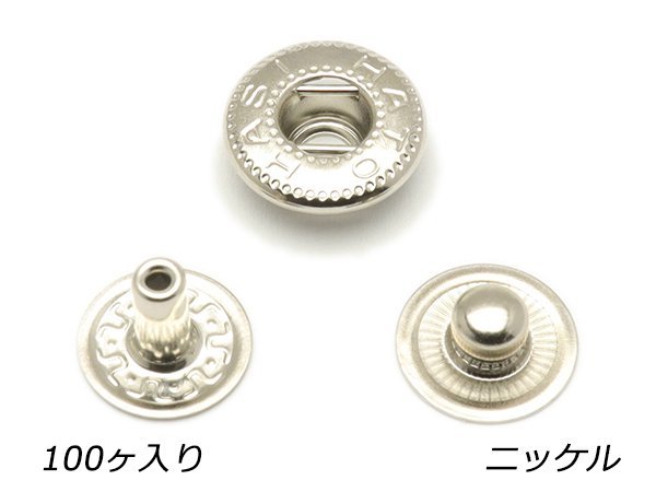 【大袋】デザインホック用 バネホック大 頭なし3点セット ニッケル 100ヶ【メール便対応】 レザークラフト金具 組み合わせパーツ