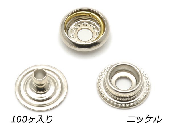【大袋】デザインホック用 ジャンパーホック小 頭なし3点セット ニッケル 100ヶ【メール便対応】 レザークラフト金具 組み合わせパーツ