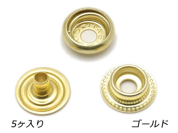 デザインホック用 ジャンパーホック小 頭なし3点セット ゴールド 5ヶ【メール便対応】 レザークラフト金具 組み合わせパーツ