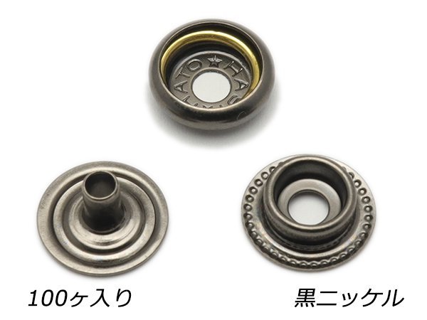 【大袋】デザインホック用 ジャンパーホック小 頭なし3点セット 黒ニッケル 100ヶ【メール便対応】 レザークラフト金具 組み合わせパーツ