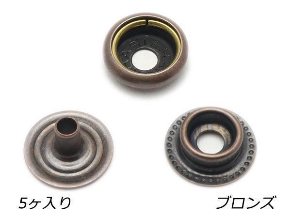 デザインホック用 ジャンパーホック小 頭なし3点セット ブロンズ 5ヶ【メール便対応】 レザークラフト金具 組み合わせパーツ