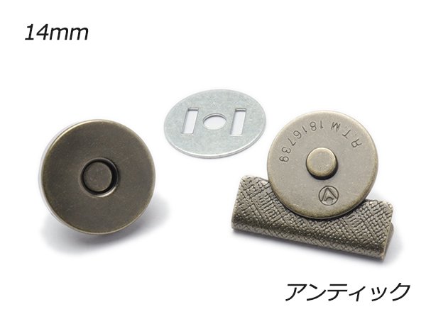 ヘリ留めマグネット アンティック φ14mm(ヘリ部20×9mm) 1ヶ【メール便対応】 [ぱれっと] レザークラフト金具 マグネ18mm