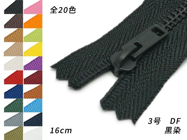 【YKK】金属ファスナー 3号 黒染 DF 全25色 16cm【メール便対応】 [レザークラフトぱれっと] レザークラフトファスナー 15-18cm