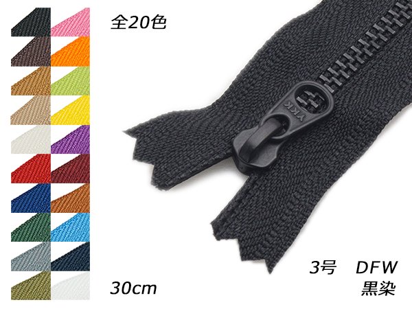 【YKK】金属ファスナー 3号 黒染 DFW 全25色 30cm【メール便対応】 [レザークラフトぱれっと] レザークラフトファスナー 30cm