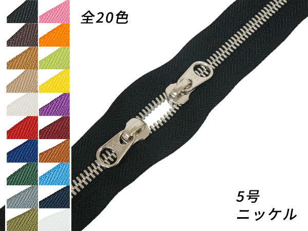 ■商品名:【YKK】シンメトリックファスナー 5号 スライダー2個付き(頭合わせ) ニッケル DFW