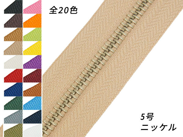 【YKK】金属ファスナー 5号 両用 ニッケル (メートル売り) 全25色 1m【メール便対応】 [レザークラフトぱれっと] レザークラフトファスナ