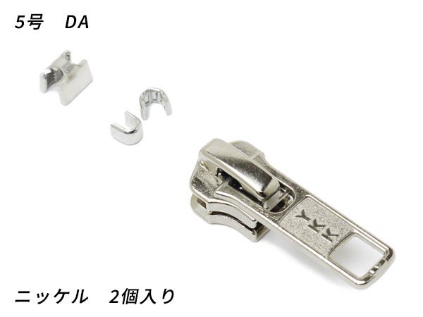 【YKKスライダー】金属ファスナー用 スラス上下留めセット 5号 DA(ロックタイプ) ニッケル 2ヶ入【メール便対応】 [レザークラフトぱれっと]