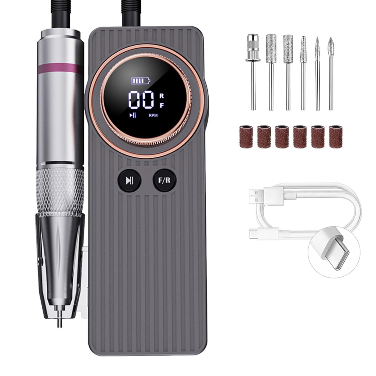 【大容量充電式リチウム電池】USB充電式ネイルドリルは大容量バッテリー内蔵で、完全に充電されるまでの時間は、2-3時間充電するだけで6-8時間使用できます。