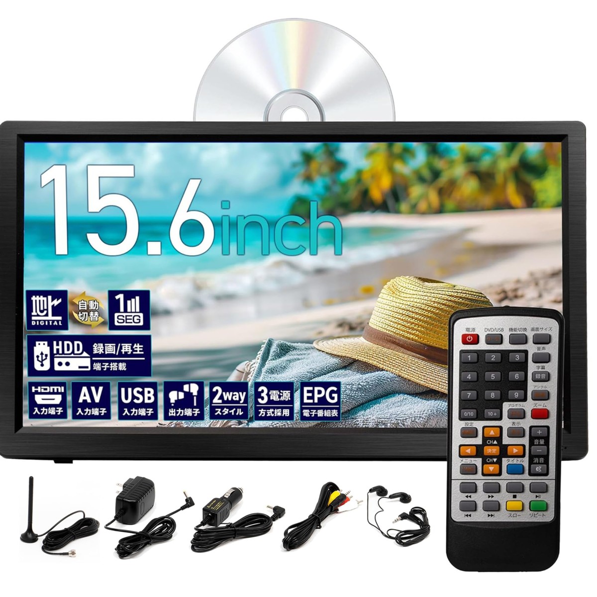 Style:2) スタンドタイプ_Size:15.6型 [東京Deco] 15.6型 液晶テレビ DVDプレーヤー内蔵 スタンドタイプ 車載用バック付属 アンテナ付き簡易 [3WAY電源(AC/DC/充