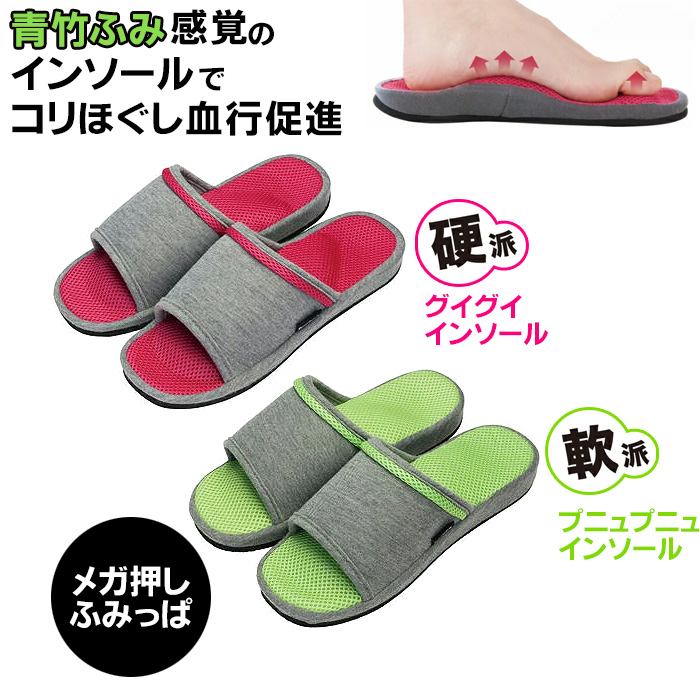 メガ押しふみっぱ 23.0〜25.0cm 青竹踏み サンダル 土踏まず スリッパ 足裏 竹踏み マッサージ レディース 健康サンダル