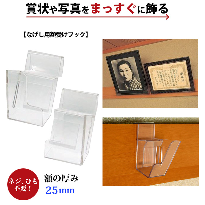 壁を傷つけない 長押フック なげし フック なげし用 額掛け 想い出くん 25mm 遺影かけ 賞状 額縁 掛け 壁掛けフック 金具不要