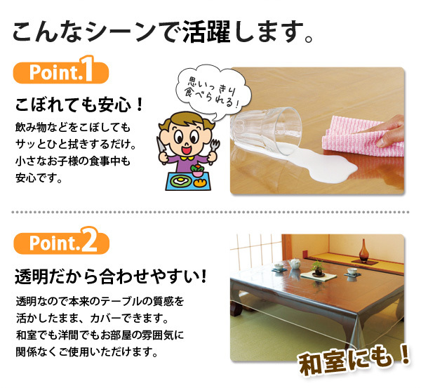 透明だから、テーブルの質感を活かしてカバーできます。