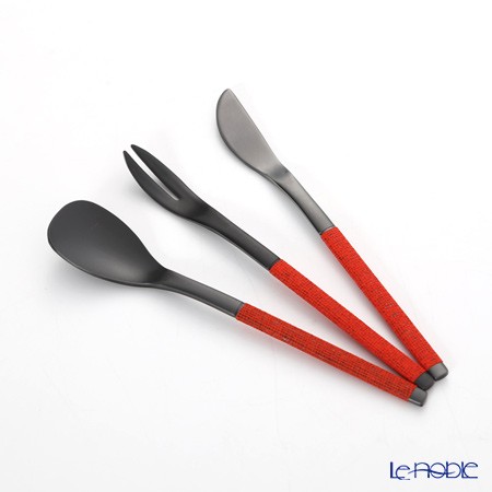 サクライ J-Tone 布着せカトラリー 紗綾 漆黒/朱 鶴田一郎デザイン 和菓子ナイフ、スプーン、フォーク 3本セット