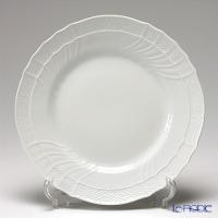 バロック様式のシェイプ、バスケットの編み込み模様の縁取り、中心に向かって入った波のようなレリーフが特徴の美しい白磁です。