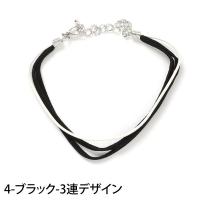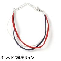 3色3連のコードつなぎデザインでシンプルながらもアクセントの効いたカラーリングのアンクレット。