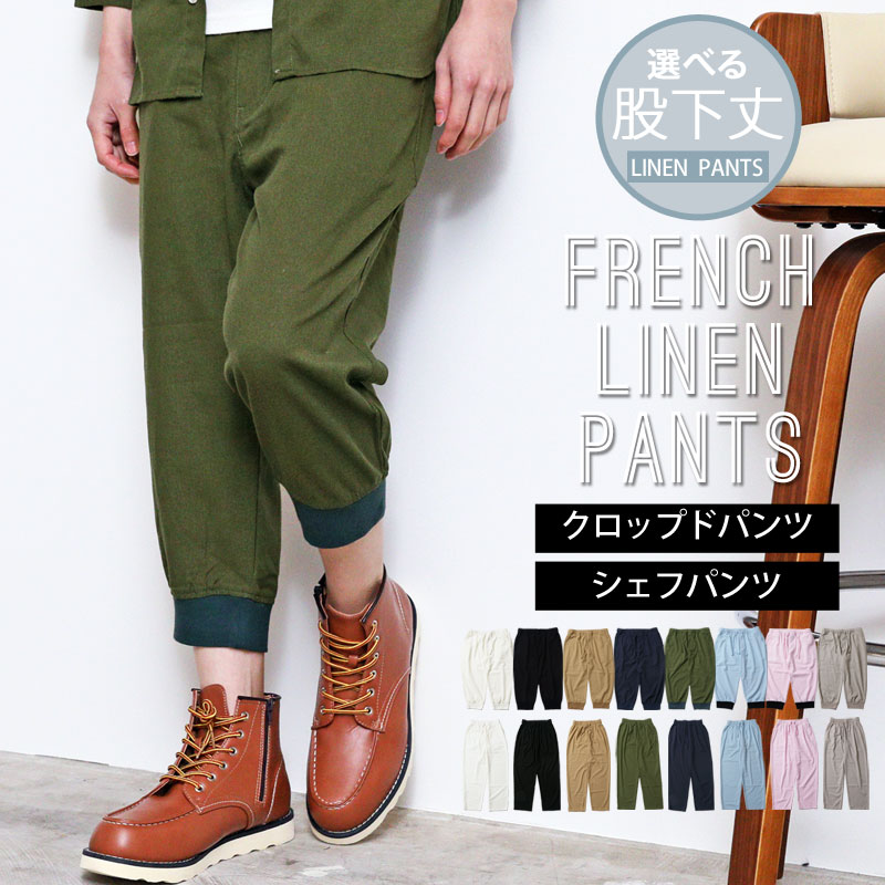 リニューアルバージョン 選べる股下2タイプ リネンパンツ メンズ イージーパンツ シェフパンツ クロップドパンツ 綿麻 フレンチリネン 7分丈 無地 ユニセックス