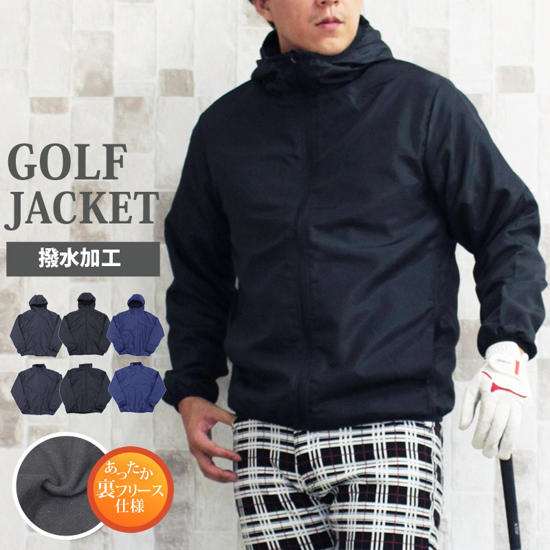 ゴルフジャケット メンズ ゴルフウェア 裏起毛フリース 撥水加工 アウター ブルゾン スタンド パーカー フード フルジップアップ 無地 暖かい 防寒 秋冬