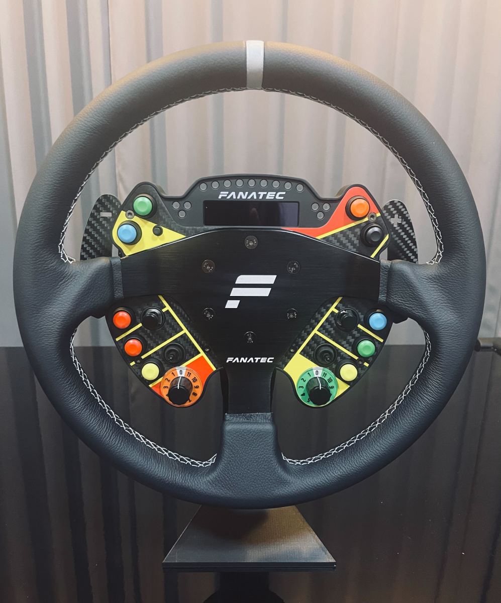 Fanatec QR1 Wheel-Side Quick Release Adapter付きのステアリングをスロットインとしてデスク等に配置出来るスタンドです。置き場所に困るステアリングを壁に穴をあけることなく、自立したスタンドとして飾ることができます。写真のように2kgを超える32cmステアリング(Fanatec重量級)からFormula V2.5 X(軽量級)が自立するように設計しています。重みで前に倒れるようなことはありません。