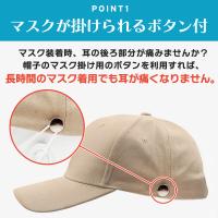 長時間のマスク着用でも耳が痛くならない「マスクが掛けられる」帽子になります。