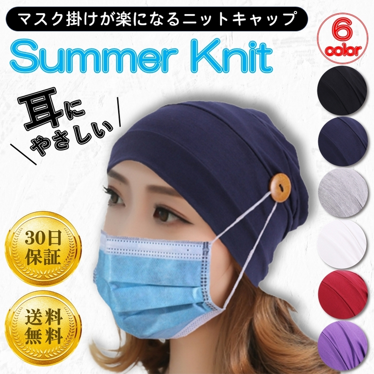 インナーキャップ ニット帽 ニットキャップ レディース メンズ 薄手 マスク ボタン
