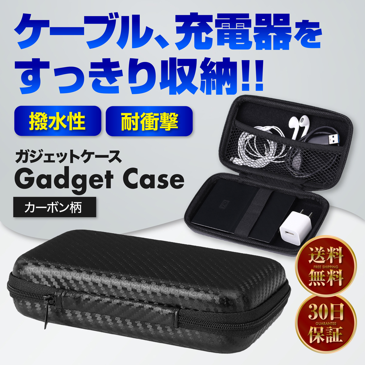 ガジェットケース スマホケース カーボン トラベルポーチ 小物入れ 充電器 ケーブル バッテリーケース 大きめ 爆買