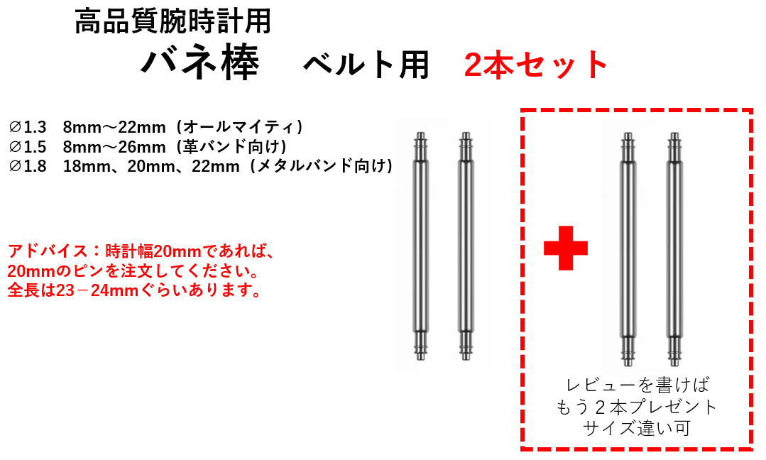 バネ棒 ベルト用 腕時計 時計 バンド 直径 1.3mm 1.5mm 1.8mm 湾曲加工 修理部品 工具 セイコー カシオ バネ棒外し 10mm 16mm 18mm 20mm 22mm 26mm 2本セット
