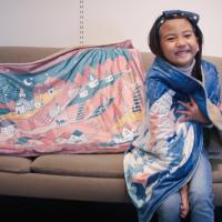 遊び疲れたらそのまま丸まってお昼寝もできる、心も体も温まるブランケットです。