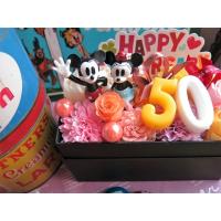 プリザーブドフラワー入り 横長ボックス 誕生日 銀婚式お祝い 両親 友達 兄弟 25周年 数字25入り ミッキー ミニー ご希望数字入り 花束風ギフト