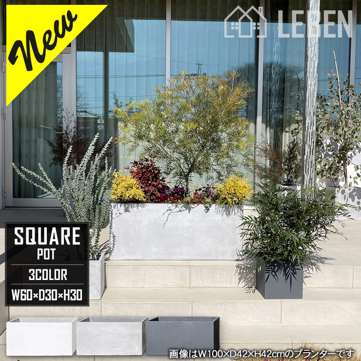 【●★ご購入特典あり】プランター 大型 植木鉢 おしゃれ ガーデニング用品 幅60×奥行30×高さ30cm 長方形 ホワイト グレー スクエア 屋外 屋内