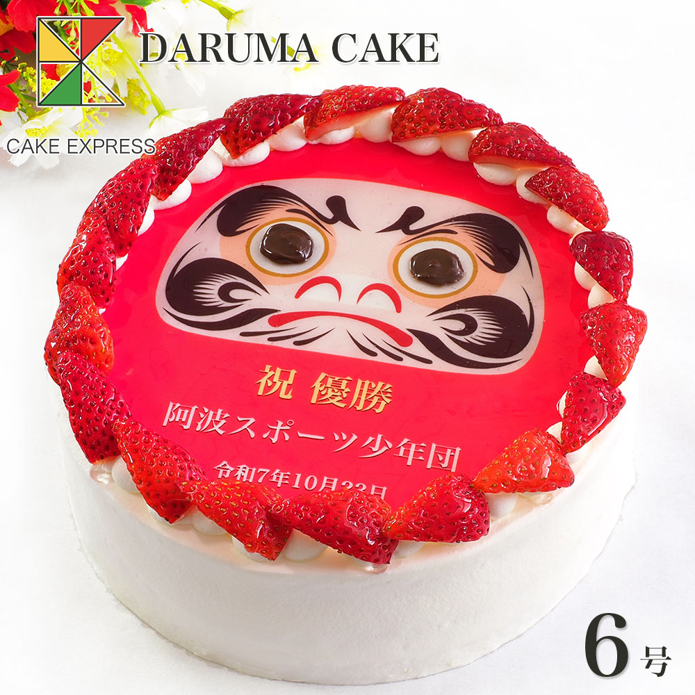 いちごのだるまケーキ 生クリーム 6号 7〜10名様用 達磨 縁起だるま 目入れ 祝勝会 合格祝い チョコペン付き